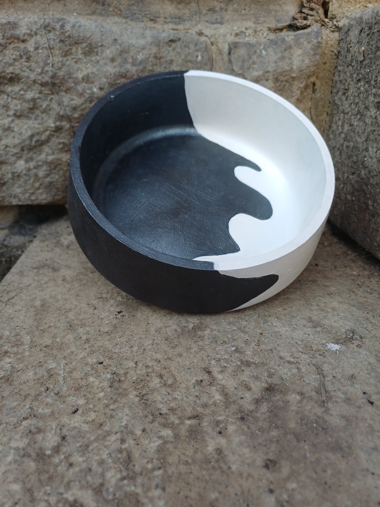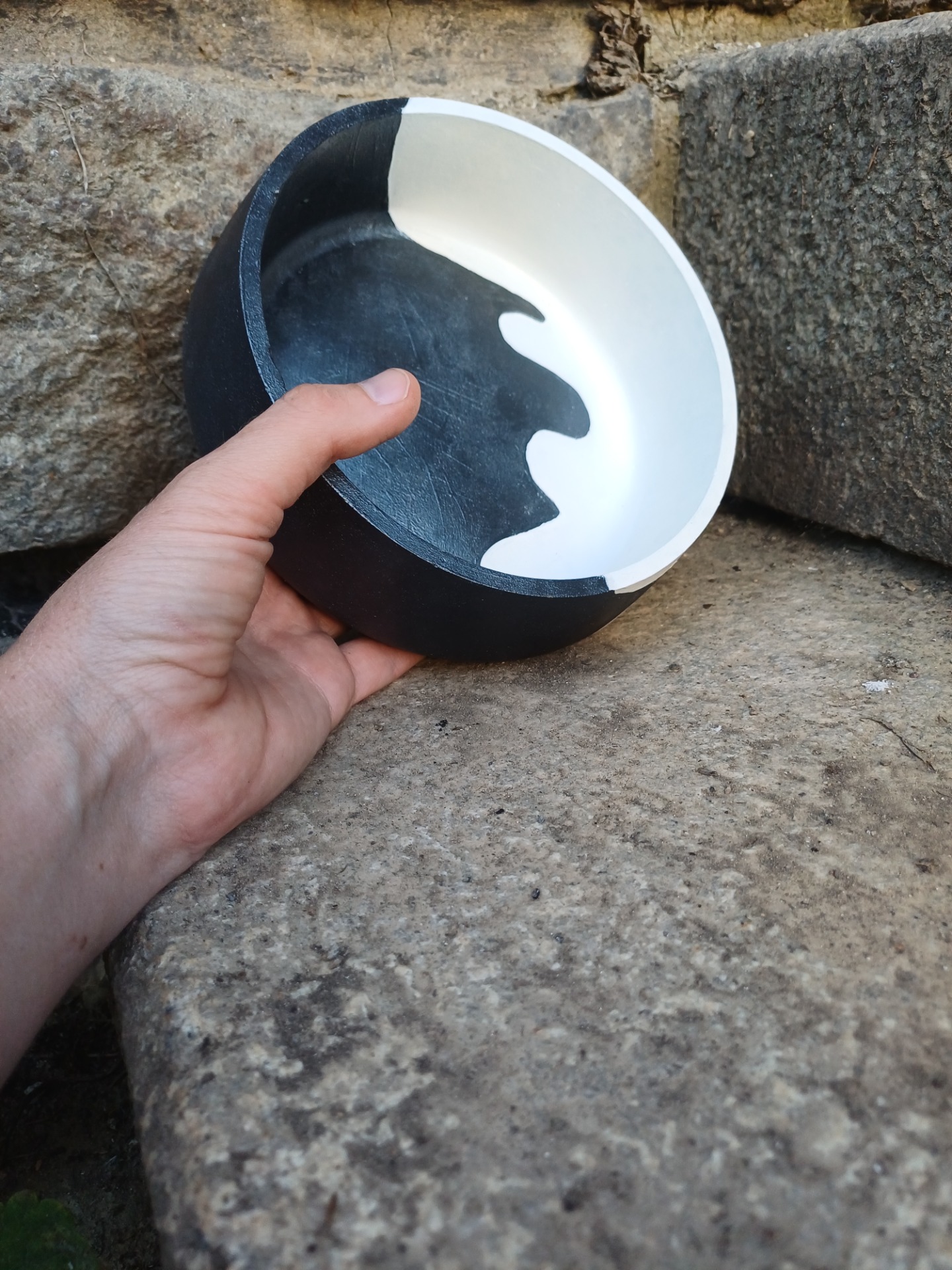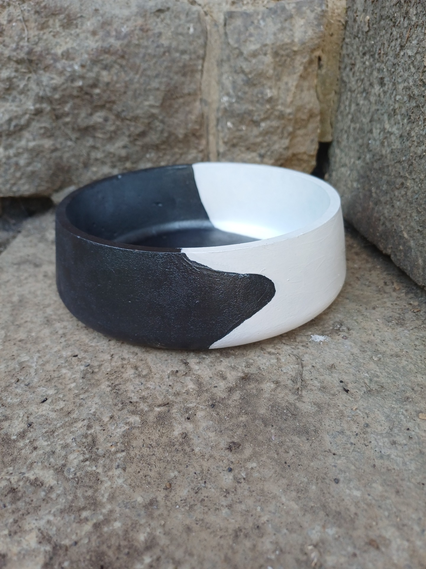 Minimalismus s kapkou rebélie. Tahle ručně vyráběná miska hraje na kontrast – černá a bílá, světlo a stín, yin a yang… a pak přijdeš ty a hodíš do ní klíče, oříšky nebo šperky. Ať už v ní skončí cokoli, vždycky to bude vypadat stylově.