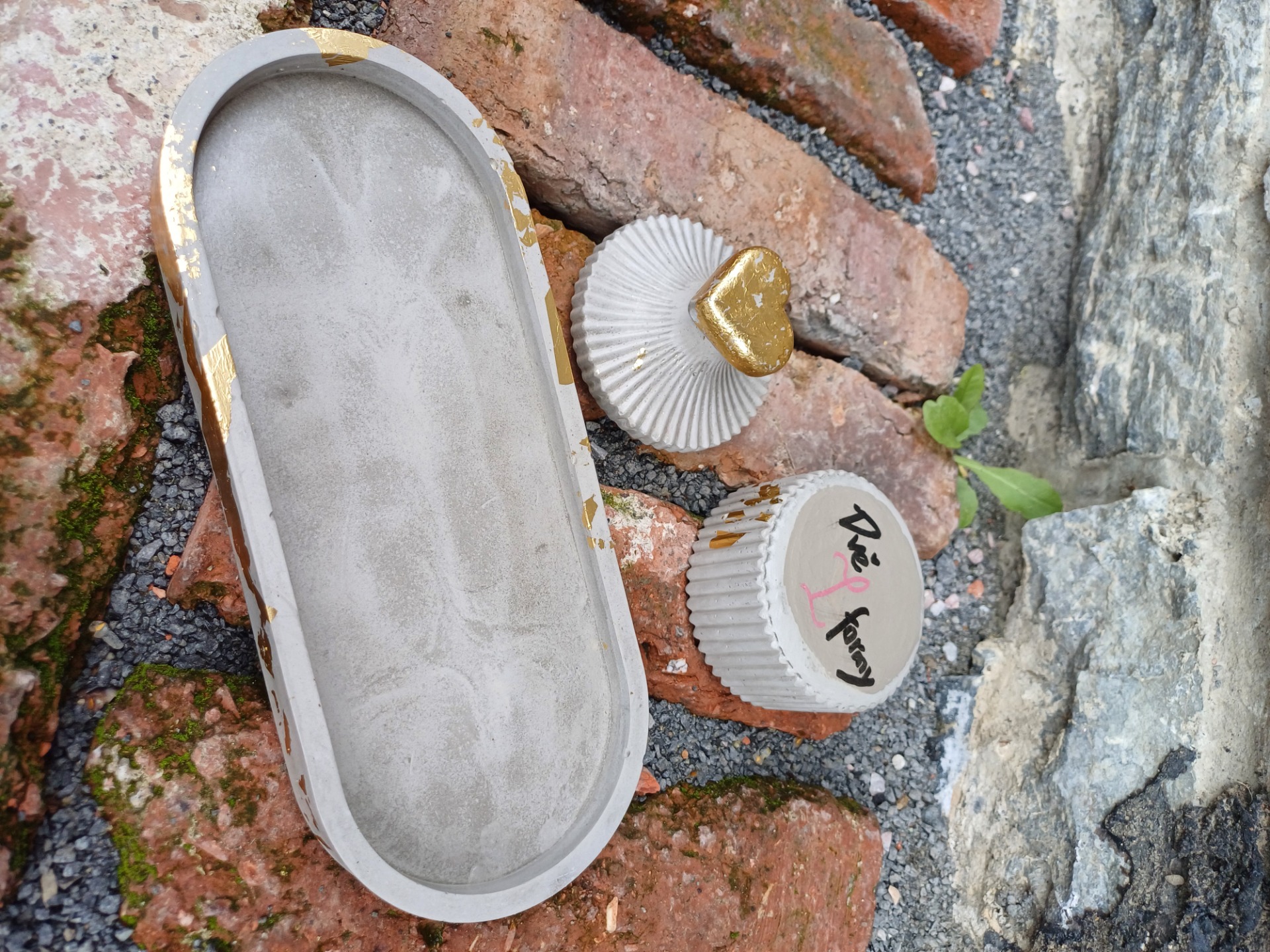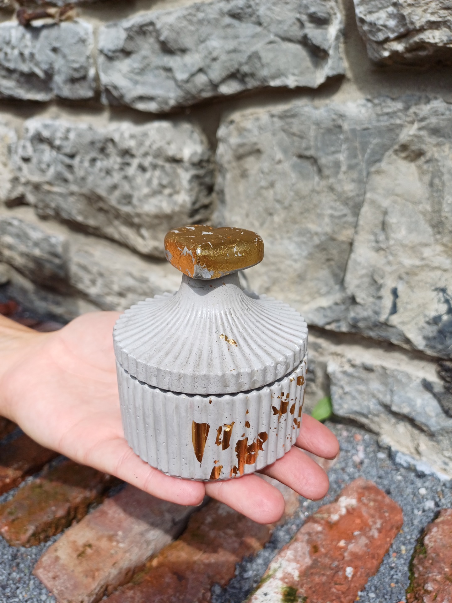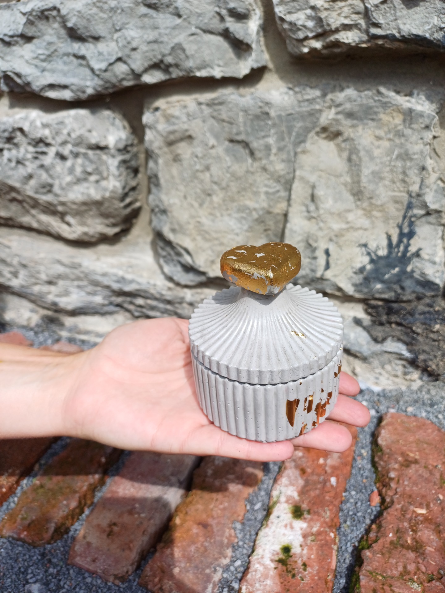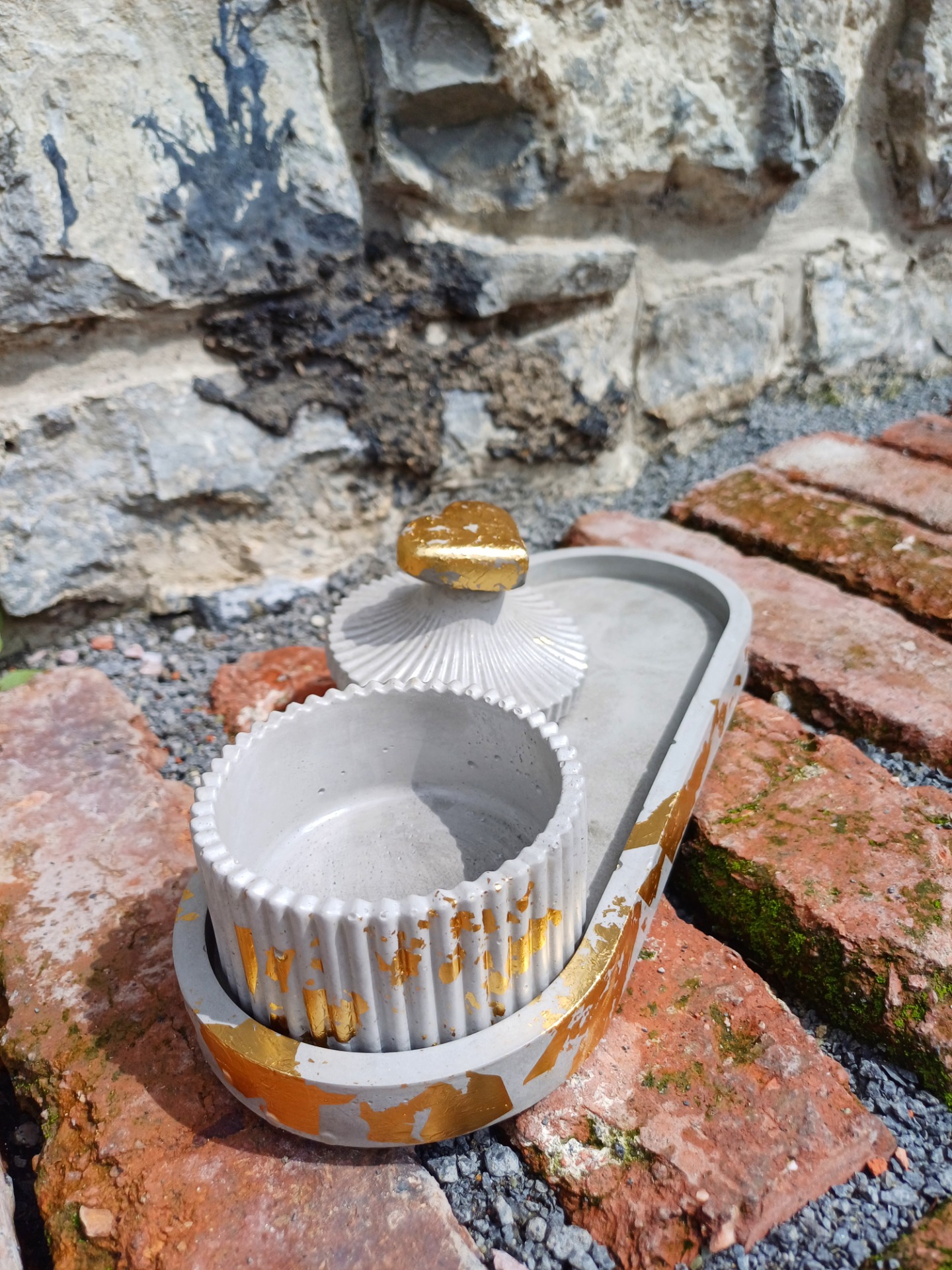 Troška toho pozlátka přeci nemůže škodit. Romantická vázička, ve které nebude žádná květinka vypadat jako odrbané košťátko. Dózička, ideální na 4 kostky cukru bridž, pokud by vám květinka od přítele dostatečně neosladila den. A podtácek...to aby se všechno tak nějak nerozprchlo po stole.