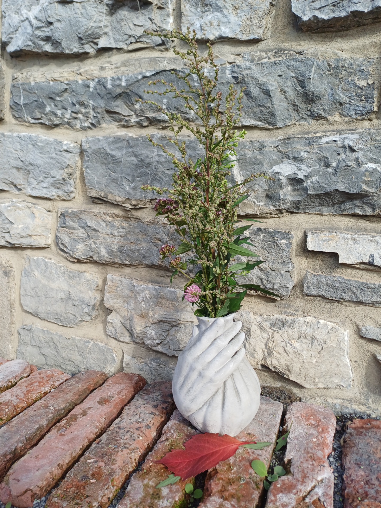 Tato váza je určena pouze na sušené květy - beton velmi nasákává vodu.